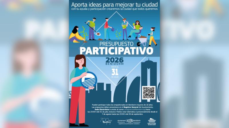 El Ayuntamiento de Benidorm, a través de la Concejalía de Participación Ciudadana, ha abierto el plazo para que los ciudadanos puedan presentar sus propuestas para su valoración y posible inclusión en las partidas de inversiones municipales del Presupuesto Participativo de 2026. La concejal de Participación Ciudadana, Ana Pellicer, ha explicado que este periodo de presentación de iniciativas “va a permanecer abierto hasta las 23.59 horas del próximo 31 de julio” y ha invitado a la ciudadanía a “participar, enviando sus ideas y aportaciones para, entre todos, hacer de Benidorm una ciudad aún mejor”.