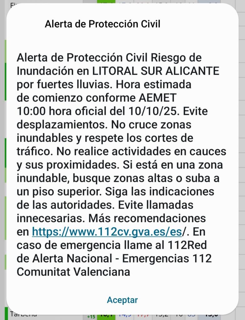 🔴 decretada por el Centro de Coordinación de Emergencias de la Generalitat Valenciana, en vigor DESDE LAS 10 DE LA MAÑANA DE MAÑANA, VIERNES 10 DE OCTUBRE, el Ayuntamiento de Benidorm ha decretado: