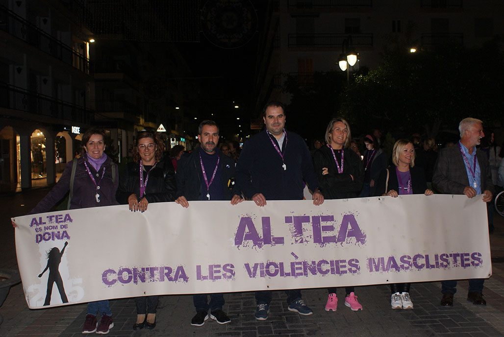La Concejalía de Igualdad del Ayuntamiento de Altea, regida por José Luis León Gascón, con motivo de la conmemoración del 25N, convocó junto a la Asociación Mujeres con Voz de la Marina Baixa una marcha nocturna que partió el día de ayer, 24 de noviembre, desde la plaza del Ayuntamiento. Bajo el lema “No marchites mi sonrisa”, la corporación municipal asistió al acto mostrando su rechazo a la violencia machista.
