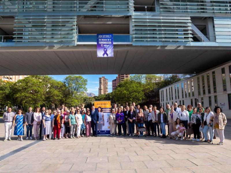 La Asociación de Fibromialgia de Benidorm (Asofiben) ha comenzado hoy las actividades para conmemorar el Día Mundial de la Fibromialgia, que se celebra este próximo domingo 12 de mayo. La primera cita ha tenido lugar esta mañana con la colocación de una pancarta alusiva en el plaza del Ayuntamiento junto a la que han posado el alcalde Toni Pérez y miembros de la corporación municipal con representantes de la asociación y su junta directiva, así como profesionales y afectadas pertenecientes a la misma.