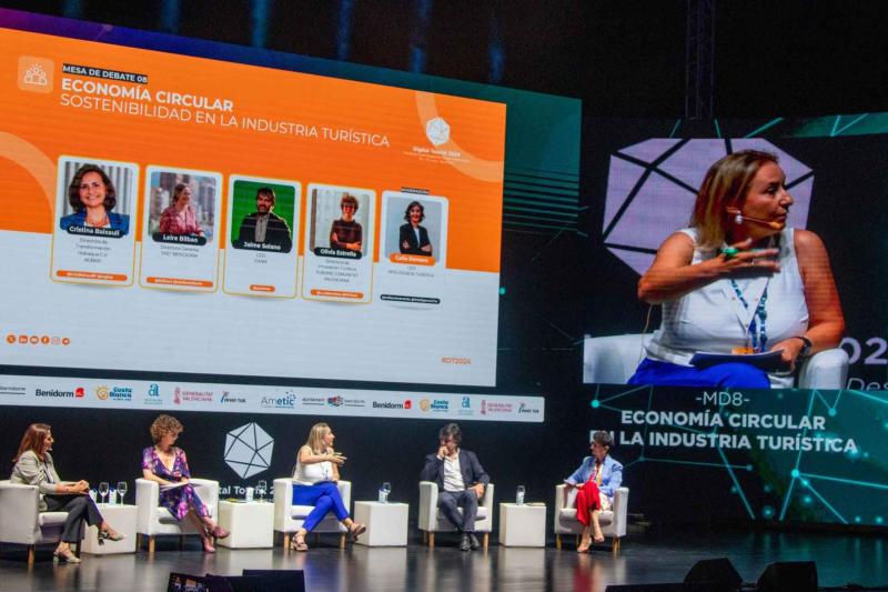 Impulsar acciones de economía circular y turismo regenerativo para ser capaces de atraer a turistas cada vez más responsables con la sostenibilidad y el medioambiente. Esa es la invitación que hoy ha lanzado Benidorm a los asistentes a la segunda jornada del congreso Digital Tourist que se celebra en la ciudad, durante una mesa redonda titulada ‘Economía circular y sostenibilidad en la industria turística’, en la que han participado la gerente de la Fundación de Turismo Visit Benidorm, Leire Bilbao, y la responsable de Inteligencia Turística, Celia Romero, que ha ejercido como moderadora.