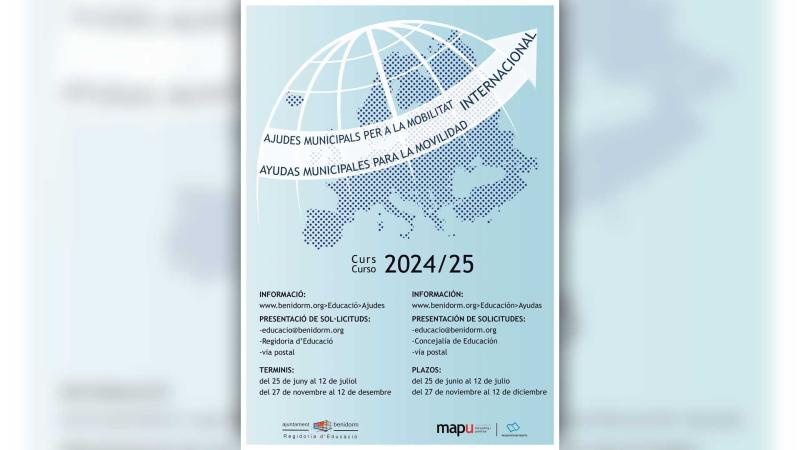 Las bases para la concesión de estas ayudas señalan que los beneficiarios deben ser estudiantes con plaza en alguno de los programas de movilidad internacional, estar empadronados en Benidorm con al menos un año de antigüedad, deben acreditar haber sido seleccionados en programas de movilidad internacional en el curso 2024/25 y tendrán que presentar la solicitud y documentación en el plazo establecido en las bases.