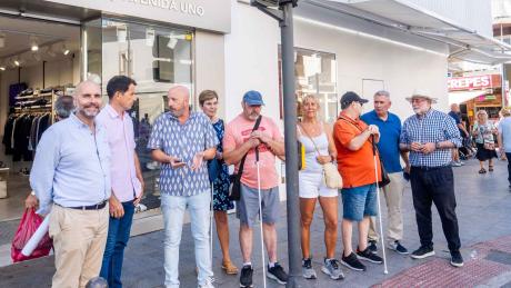 El concejal de Movilidad del Consistorio benidormense, Francis Muñoz; el director de la ONCE en Benidorm y la comarca, Vicente Vázquez; socios de la organización, acompañados por el concejal de Presidencia, Juan Díaz y técnicos municipales, han protagonizado esta primera acción de la Semana de la Movilidad que pretende dar visibilidad a los itinerarios peatonales accesibles con los que cuenta la ciudad.