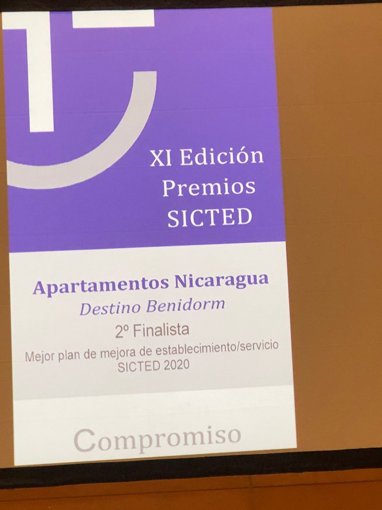 Justo ha sido en esta categoría en la que la candidatura de Apartamentos Nicaragua de Benidorm, ha sido seleccionado como Segundo finalista, y ha recibido el galardón. Hay que destacar que es una de las dos empresas reconocidas este año privada, ya que el resto son instituciones, ayuntamientos, entre otros.