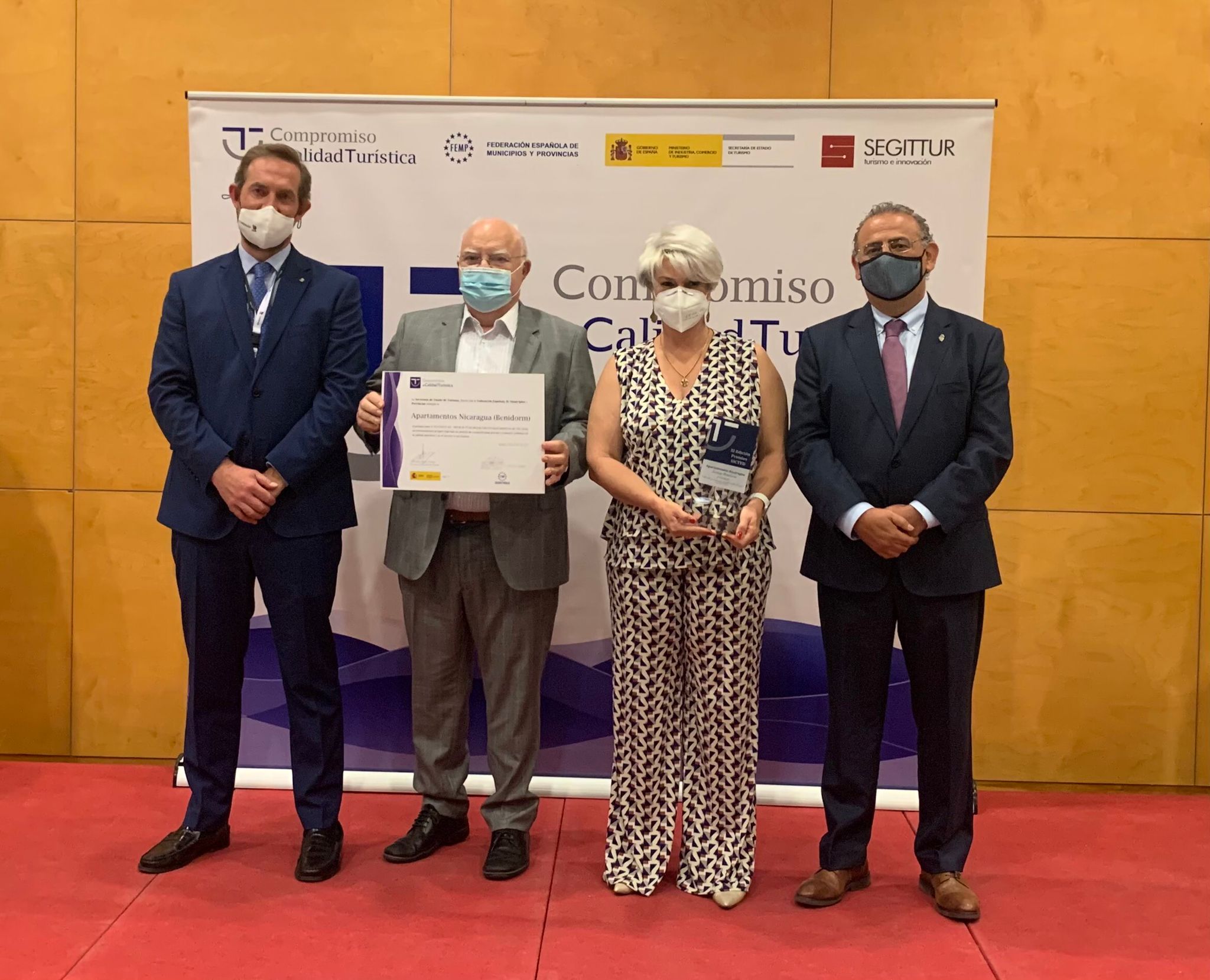 La Secretaría de Estado de Turismo y la FEMP entregaron en el marco de FITUR, que tuvo lugar hace unas semanas, los XI Premios del Sistema Integral de Calidad Turística en Destino (SICTED) y Apartamentos Nicaragua de Benidorm ha recibido este galardón junto con las Playas de Málaga y el Hotel Retiro del Maestre en Almagro (Ciudad Real)