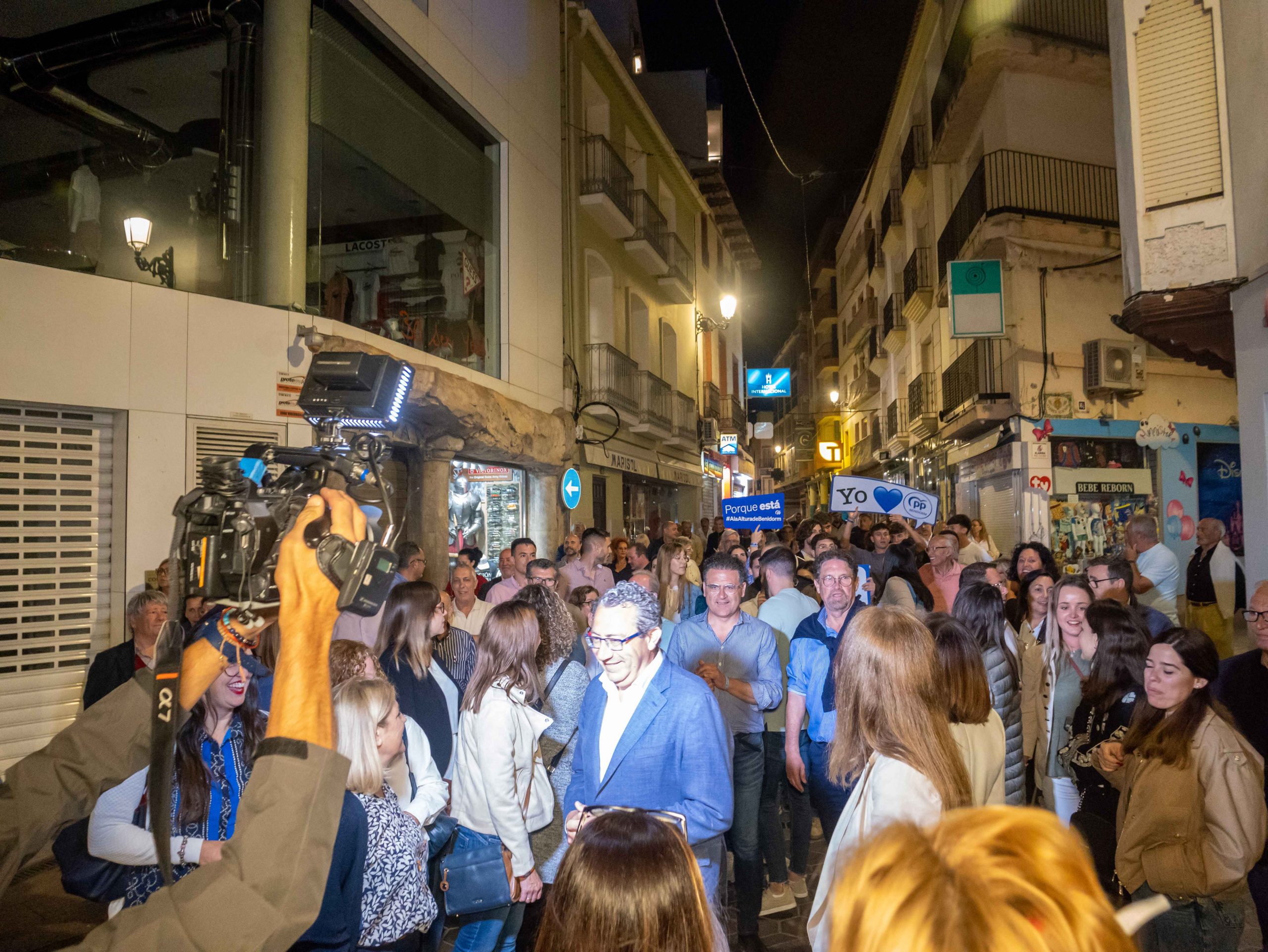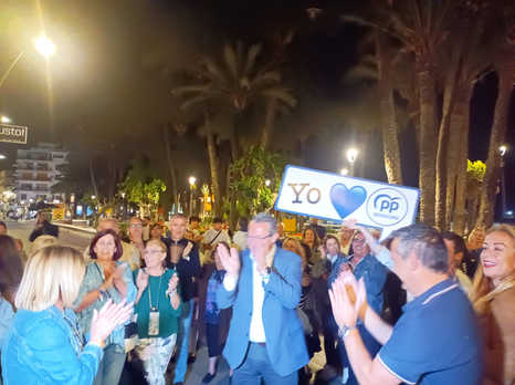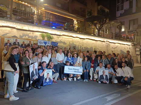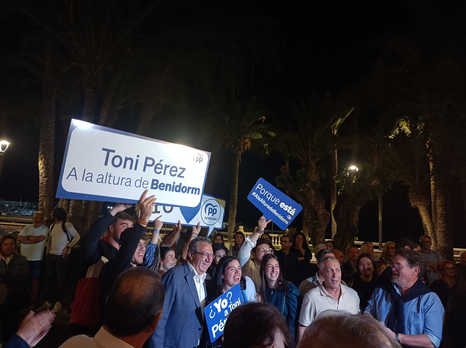 Alrededor de 150 militantes del PP de Benidorm se dieron cita poco antes de las 24.00 h para participar, junto a Toni Pérez y los integrantes la candidatura del Partido Popular, en el acto en el que, además, participaron los candidatos a Corts Valencianes, José Ramón González de Zárate y Manuel Pérez Fenoll; y el diputado nacional, Agustín Almodóbar.