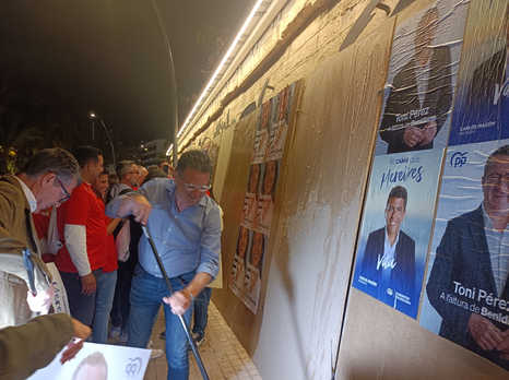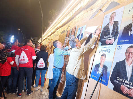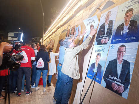 Con el primer segundo de este viernes, 12 de mayo, daba comienzo en Benidorm la campaña electoral de las elecciones Municipales y Autonómicas del 28M. Como cada cuatro años, la tradicional y simbólica pegada de carteles en el Parque de Elche reunía a todas las candidaturas presentadas en la ciudad, entre las que destaca la que encabeza el actual alcalde y candidato a la reelección por el Partido Popular, Toni Pérez.