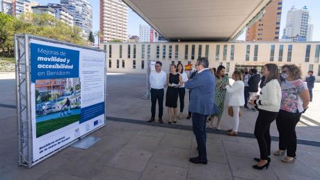 La muestra, a través de ocho paneles en inglés y castellano, explica cómo la inversión de 23 millones de euros del Ayuntamiento de Benidorm y los fondos FEDER está transformando Benidorm en una ciudad más sostenible, verde y cómoda para sus vecinos. “Aunque ya hemos presentado algunas actuaciones como las mejoras que han transformado la zona alta de Foietes, esta exposición permitirá a vecinos y visitantes descubrir futuras actuaciones como el Complejo cultural y social de la Plaza de Toros y Parque de l’Aigüera, en el que irá un centro para asociaciones, multicultural y para todas las edades y la construcción de una biblioteca central a la altura de lo que Benidor se merece. O el Centro Social de Mediación,” ha añadido Toni Pérez.