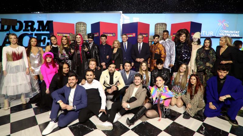 También posaron ante las cámaras los presentadores de esta edición: Mónica Naranjo, Inés Hernand y Rodrigo Vázquez; algunos de los grupos y artistas de la primera edición del Benidorm Fest como Varry Brava, Rayden, Marta Sango y Sara Deop; y estrellas de la música nacional ligadas al certamen de Eurovisión como Rosa López, Soraya y Serafín Zubiri. A ellos se sumaron el músico Miky Núñez, el presentador Jordi Cruz y el cantante Xuso Jones, entre otros. Estos dos últimos, junto a Inés Hernand, están al frente del programa ‘Benidorm Calling’ sobre el festival.