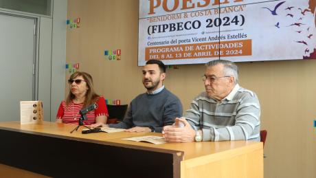 Del 8 al 13 de abril se celebrará en Benidorm la quinta edición del Festival Internacional de Poesía que organiza el Liceo Poético de Benidorm y que cuenta con la colaboración del Ayuntamiento de la ciudad. Un evento que ha sido presentado esta mañana en rueda de prensa por el concejal de Cultura, Jaime Jesús Pérez, y los directores del certamen, Julio Pavanetti y Annabel Villar.