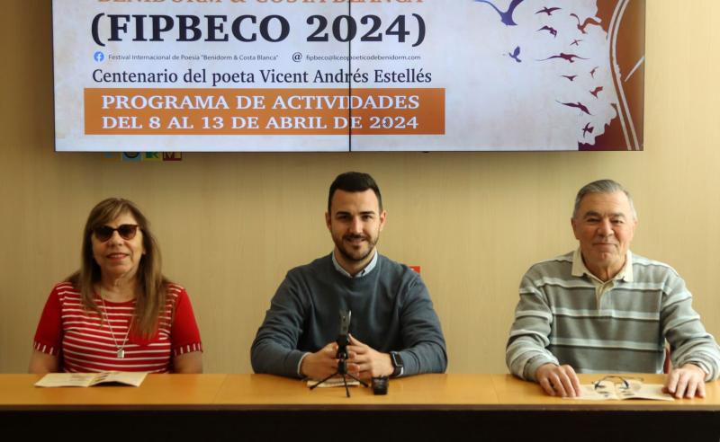 Del 8 al 13 de abril se celebrará en Benidorm la quinta edición del Festival Internacional de Poesía que organiza el Liceo Poético de Benidorm y que cuenta con la colaboración del Ayuntamiento de la ciudad. Un evento que ha sido presentado esta mañana en rueda de prensa por el concejal de Cultura, Jaime Jesús Pérez, y los directores del certamen, Julio Pavanetti y Annabel Villar.