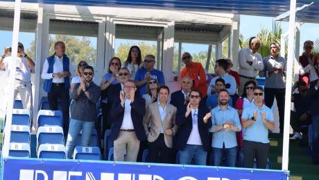A la celebración se ha sumado el alcalde de Benidorm, Toni Pérez, el concejal de Deportes, Javier Jordá, miembros de la corporación e incluso el presidente del grupo DV7, el ex jugador internacional David Villa, ha estado presente en el palco y con la plantilla para después quedarse a presenciar el encuentro que disputaba el equipo frente al CFI Alicante.