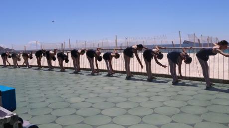 Las alumnas de las escuelas y academias locales fueron dirigidas por la bailarina Andrea Méndez antes de que el apagón frustrase el ‘flashmob’ que había preparado
