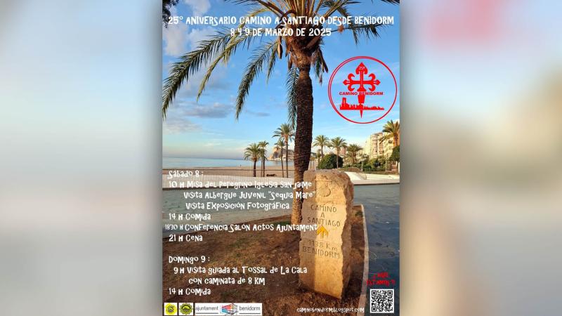 También el sábado, a las 18.30 horas, en el Salón de Actos del Ayuntamiento de Benidorm se desarrollará la conferencia ‘Camino de Benidorm a Santiago. 25 años de un camino del siglo XXI’, que rememorará el tiempo transcurrido desde la apertura del ramal entre Benidorm y Villena con el que la ciudad pasó a formar parte de esta histórica peregrinación. La jornada también incluye una comida y una cena con los participantes.