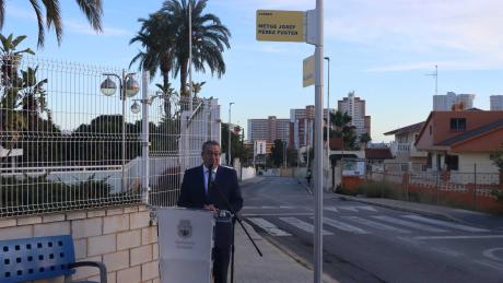 El nombre del Metge Josep Pérez Fuster ya luce en una calle de Benidorm después de que en la tarde de ayer se desarrolló el acto oficial del descubrimiento de la placa con su nombre en la vía en la que se encuentra la Residencia y Centro de Día de mayores de Foietes. Un acto al que acudió buena parte de la corporación local, así como familiares y descendientes del prestigioso médico.