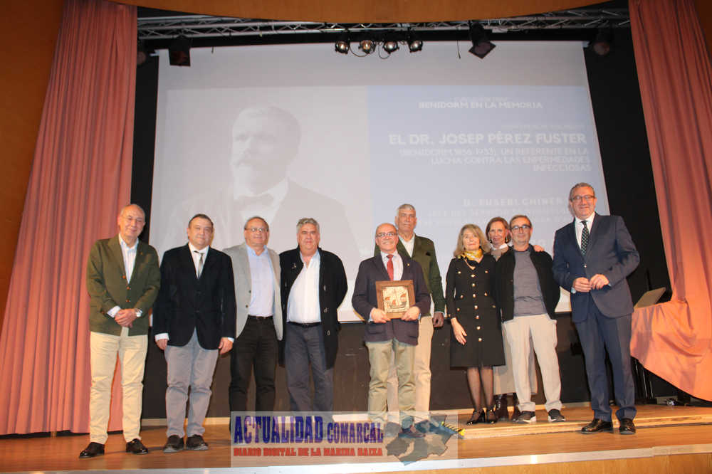 Antes, su bisnieto José Vicente Pérez-Fuster Soto, intervino para agradecer a la ciudad el acto homenaje y recordó que “estudié la carrera de medicina por él”. A pesar de no residir en Benidorm señaló que “cada vez que paso por la AP7 y veo la ciudad me emociono porque siento las huellas de esta ciudad en mi ser aunque no me haya criado aquí”.
