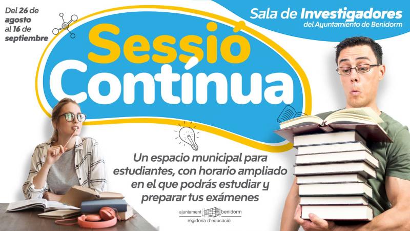 La Concejalía de Educación vuelve a activar, a partir de mañana viernes, el programa ‘Sessió Contínua’ que tiene por objetivo facilitar a los estudiantes que deben de afrontar los exámenes de septiembre la preparación de los ejercicios para afrontarlos con las máximas garantías.