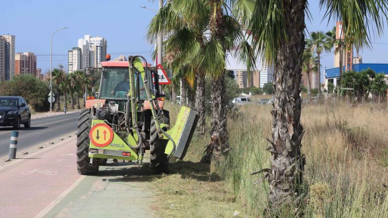 El Ayuntamiento de Benidorm, a través de las Concejalías de Espacio Público y Limpieza Viaria, ha comenzado hoy trabajos de adecentamiento y adecuación de los caminos de la zona de l’Horta, a ambos lados de la avenida Comunidad Valenciana.