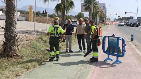 “Lo que queremos” ha afirmado Muñoz, es “dejar todos estos caminos del entorno de la huerta en un estado perfecto para el tránsito de personas y vehículos”. Para ello está trabajando personal de la empresa concesionaria de limpieza y recogida de residuos, FCC, y se está empleando una maquinaria específica municipal; una desbrozadora que limpia el terreno y deposita los restos vegetales fuera del propio camino para que sirva de nutriente a las especies vegetales. “Lo que se está retirando es material que ya estaba invadiendo la calzada y los carriles bici y que dificultaba la visión de la señalización horizontal y vertical” ha precisado el concejal.