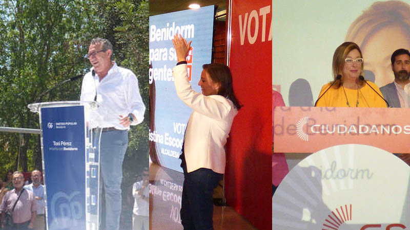 En “Benidorm a Debate” participarán los candidatos de los partidos políticos con representación en el Ayuntamiento de Benidorm: Toni Pérez por el Partido Popular, Cristina Escoda del Partido Socialista Obrero Español y Victoria Villar de Ciudadanos.