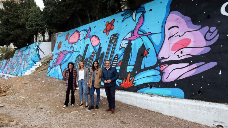 La obra, que ha sido pintada durante los últimos diez días, ha sido visitada esta mañana por el alcalde Toni Pérez, la concejal de Patrimonio Histórico, Ana Pellicer, la propia artista y la asesora artística de la Concejalía, Alicia Lamarca. Pérez ha destacado que “esta actuación forma parte del eje central que ha marcado todas las exposiciones culturales de este primer trimestre, que han tenido como epicentro a la mujer” como se ha podido ver en el Museu Boca del Calvari o las diferentes muestras en los Espais d’Art Urbà municipales. “que se complementan con este gran mural como gran homenaje a la mujer de Benidorm” ha señalado el alcalde.
