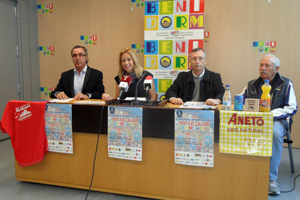 La concejal de Deportes Ana Pellicer, junto a Alfonso Andrés, representante de la Festa El Calvari, Bienvenido Gómez, del Club Atletismo Benidorm y Pepe Brotons, gerente del Grupo Brotons han presentado esta mañana la trigésimo séptima edición del Cross Popular “Festa El Calvari”, que se disputará el próximo domingo 6 de Marzo en Benidorm