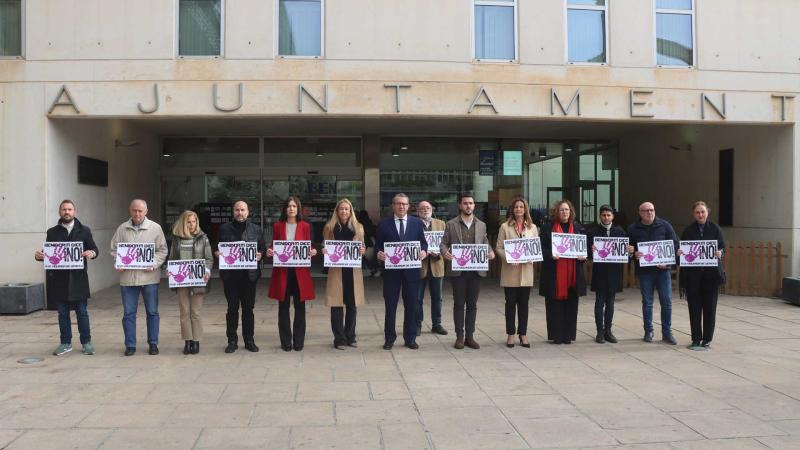 La concentración silenciosa ha tenido lugar en la puerta del Ayuntamiento y ha estado encabezada por el alcalde, Toni Pérez, y otros miembros de la corporación municipal, que han expresado así su rechazo unánime a este asesinato machista.