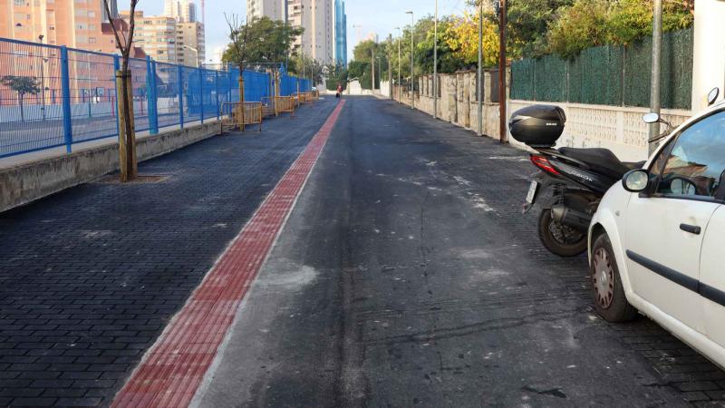 Los trabajos han incluido la modificación de la rasante de la calle para mejorar la evacuación de las aguas pluviales y para adaptarse a los vados existentes y a los accesos al colegio Miguel Hernández. En esta vía, además, se ha plantado arbolado nuevo ya que no existía previamente.