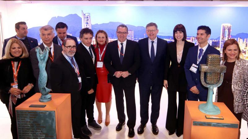 Benidorm ha sido la primera parada del presidente de la Generalitat, Ximo Puig, en su visita a la Feria Internacional de Turismo (Fitur) de Madrid, en la que hoy se celebra el Dia de la Comunitat Valenciana. El alcalde, Toni Pérez; el presidente de la patronal hotelera Hosbec, Fede Fuster; la secretaria general de la entidad, Nuria Montes; y miembros de la Corporación municipal han recibido al presidente en el stand de Benidorm, donde ha llegado acompañado por la ministra de Ciencia e Innovación, Diana Morant, y por el secretario autonómico de Turismo, Francesc Colomer, entre otros.