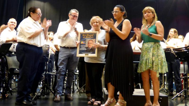 En el intermedio, el alcalde, la presidenta de la Unión Musical, Mª Carmen García, y el director de honor de la entidad, Rafael Doménech, entregaron a la viuda e hijas de su presidente de honor un obsequio como recuerdo del concierto. A continuación, se entregaron las insignias de bronce, plata, oro y oro y brillantes a los músicos que han cumplido 10, 15, 25 y 50 años en la Unión Musical respectivamente. En este último apartado, son dos los músicos en activo que están ligados desde hace medio siglo a la Unión Musical: José Fernando ý Joaquín García Fernández.