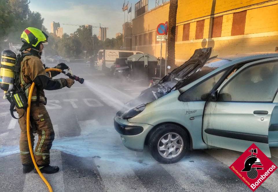También hoy viernes, a primera hora de la mañana, sobre las 08:00 horas, se ha declarado el incendio de un vehículo estacionado en la zona del parking del estadio municipal de deportes Guillermo Amor en Benidorm. Los Bomberos Provinciales con base en el Parque en Benidorm, se han desplazado a la emergencia con un vehículo de jefatura acompañado de una autobomba urbana pesada, al mando de un sargento, cabo y cuatro bomberos. A su llegada, la dotación de Bomberos, ha iniciado rápidamente las labores de extinción del incendio, el cual estaba afectando a la zona del motor del vehículo. El Servicio de Bomberos ha tenido la colaboración en dicha emergencia, de varias unidades de la Policía Local de Benidorm.