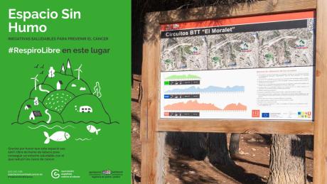 El convenio entre el Ayuntamiento y la AECC se enmarca dentro de la campaña ‘Iniciativas saludables para prevenir el cáncer’ que aparece reflejada en los carteles junto al hahstag #RespiroLibre. Los carteles van acompañados de la leyenda “Gracias por hacer que este espacio sea 100% libre de humo de tabaco para conseguir un entorno saludable con el que reducir los casos de cáncer”.