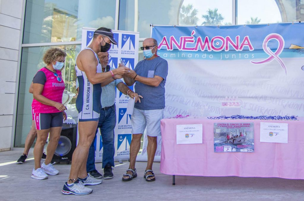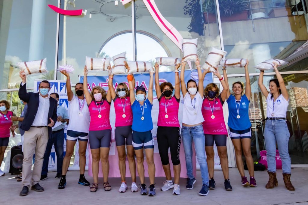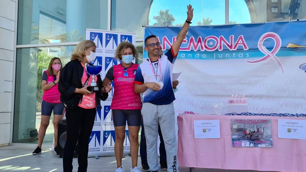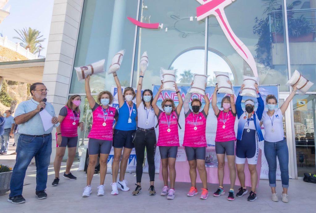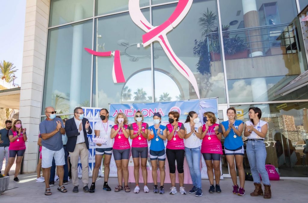 Organizado por Anémona y con la colaboración de la Concejalía de Deportes y el Club Náutico, esta mañana se ha celebrado en la Bahía de Benidorm el primer Trofeo de Banco Fijo de Anémona (Grupo de Autoayuda para Mujeres con Cáncer de Mama y Ginecológico), en el que han competido seis equipos. Medio centenar de deportistas han pugnado por el trofeo en una soleada mañana de aguas tranquilas.