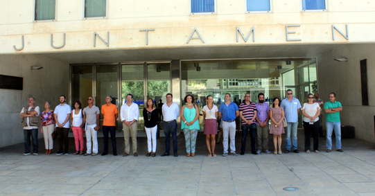 Miembros de la corporación municipal encabezados por el alcalde, Toni Pérez, y la edil de Bienestar Social, Ángela Llorca; trabajadores municipales; y vecinos se han concentrado este mediodía a las puertas del Ayuntamiento de Benidorm para mostrar su firme condena por el último caso de violencia de género registrado en la provincia: el asesinato de una mujer a manos de su pareja en Torrevieja.