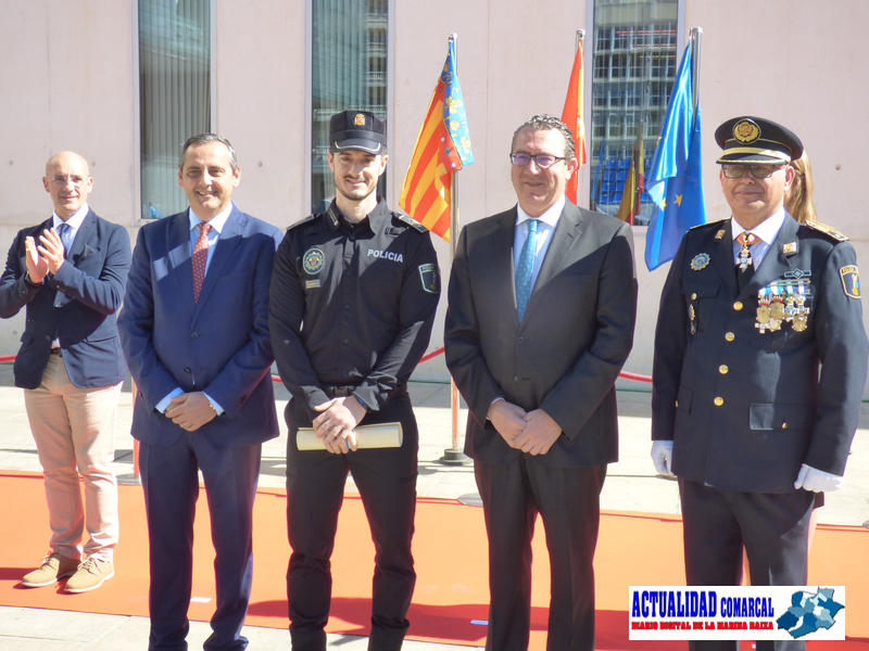 El acto oficial que ha estado presidido por el alcalde Toni Pérez, a quien han acompañado el concejal de Seguridad Ciudadana y representantes de la corporación municipal. También han estado presentes el senador por Alicante, Agustín Almodóbar; las reinas de las Festes Majors Patronals 2019, Marina Carrillo y Paula Mayor; el presidente de la Comissió, Roberto Carretero y representantes de los Cuerpos y Fuerzas de Seguridad del Estado, Protección Civil y de las asociaciones de la ciudad.