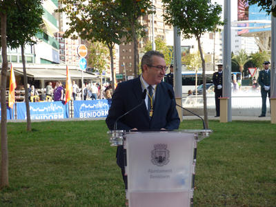 Así lo ha recordado el alcalde, Toni Pérez, durante el pleno celebrado en la Plaza de la Hispanidad y al que han asistido, entre otros y junto a los miembros de la Corporación, el diputado nacional Agustín Almodóbar; el diputado autonómico Manuel Pérez Fenoll; el diputado provincial y edil de Benidorm, José Ramón González de Zarate, autoridades civiles y miembros de las Fuerzas Armadas y de los Cuerpos de Seguridad del Estado; las reinas de les Festes Majors Patronals; representantes de asociaciones locales; y también el que fuera alcalde de Benidorm durante la ‘crisis del agua’, Rafael Ferrer Meliá.
