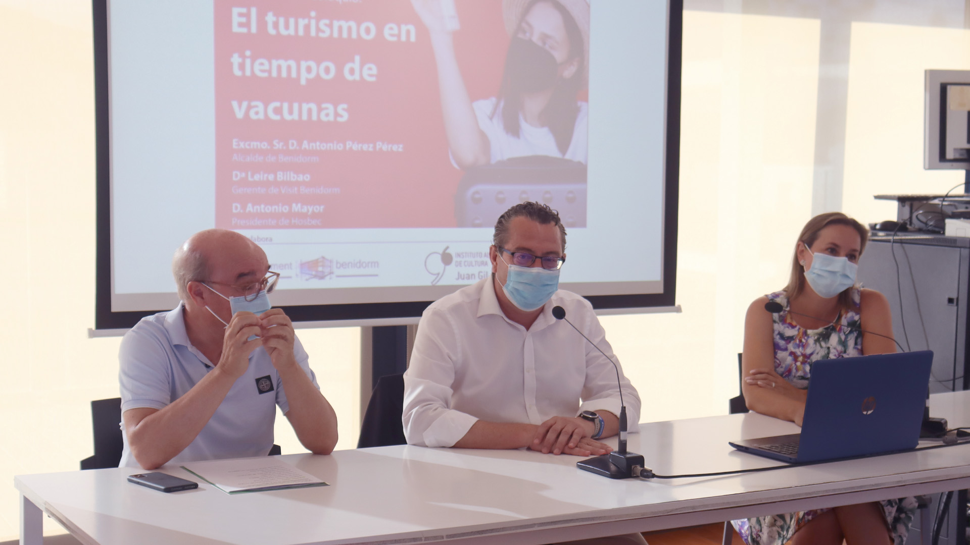 Organizado por el Departamento de Ciencias Sociales y Jurídicas del Instituto Alicantino de Cultura Juan Gil-Albert se desarrolló ayer tarde un coloquio centrado en “El turismo en tiempos de vacunas” en el que la directora gerente de VisitBenidorm, Leire Bilbao, condujo un debate centrado en la actuación de Benidorm a través de los hitos que han ido jalonando la crisis sanitaria, social y económica que aún estamos atravesando.