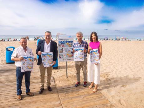 El Ayuntamiento de Benidorm ha puesto en marcha este miércoles una campaña informativa muy visual con una serie de consejos con el objetivo de mejorar la estancia y la experiencia de los turistas en la localidad. Con el slogan ‘Tus mejores vacaciones en Benidorm’, la campaña incluye, en castellano e inglés, distintas recomendaciones sanitarias relacionadas con el calor y las altas temperaturas y en materia de seguridad para no ser víctima de prácticas ilegales. La campaña ha sido presentada por el alcalde Toni Pérez en la playa de Levante y se prolongará durante todo el verano, con refuerzos en momentos puntuales. Junto al primer edil también han participado en la presentación los concejales de Seguridad Ciudadana y Playas, Jesús Carrobles y Mónica Gómez, así como otros representantes de la Corporación.