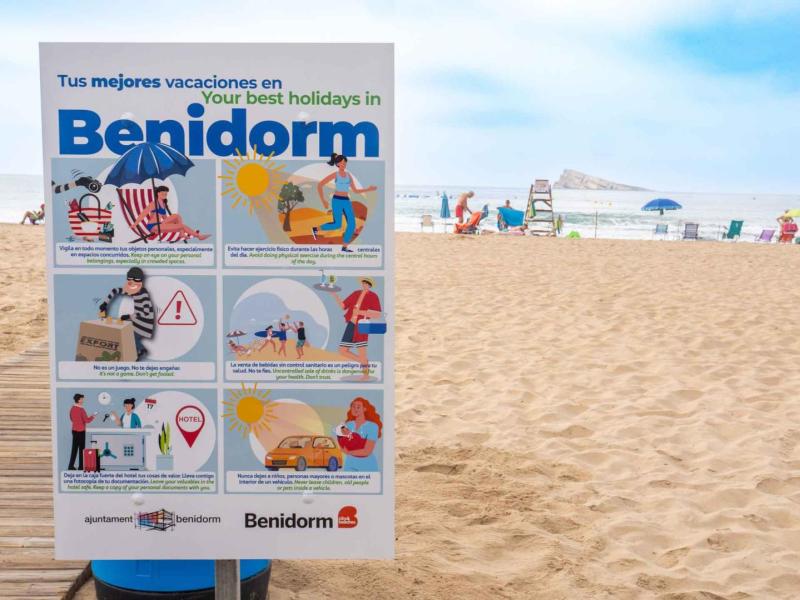 Los paneles informativos ya son visibles en muchas marquesinas de las paradas de bus, en carteles, muppis, pantallas de información ciudadana y, en general, en la mayor parte de los elementos del mobiliario urbano de Benidorm. Además, también se van a colocar en los 30 accesos a las playas de Levante, Poniente y Mal Pas; se van a repartir un millar de carteles en alojamientos, comercios y establecimientos de ocio y restauración; y se potenciará con presencia en redes sociales y otros soportes.