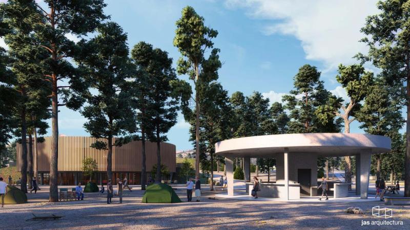El alcalde ha explicado que la zona de acampada se ha planteado respetando al 100% los senderos y abancalamientos existentes; mientras que los baños y vestuarios quedarán ubicados en el espacio principal de acceso próximo al albergue. Junto a este acceso, se dispondrá de un recinto tipo pérgola con cocina central que seguirá la tipología y diseño del edificio principal del albergue y centro de interpretación.
