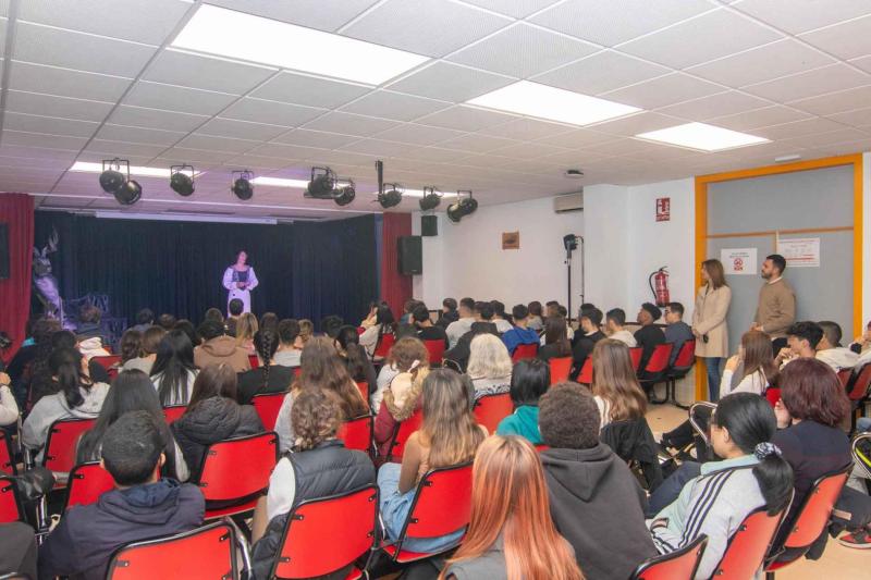 Los ediles de Cultura y Educación, Jaime Jesús Pérez y Maite Moreno, han visitado hoy el salón de actos del IES Beatriu Fajardo de Mendoza para acompañar al alumnado en una de estas representaciones. Allí han podido comprobar de primera mano “la gran acogida que esta iniciativa tiene entre los estudiantes de nuestro municipio y entre los propios centros educativos, que año tras año siguen participando en la misma”, tal y como han destacado tras la obra.