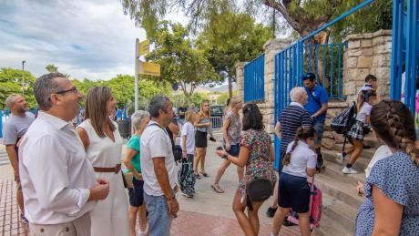 Más de 9.500 estudiantes de 2º ciclo de Educación Infantil, Primaria, Secundaria y enseñanzas postobligatorias han vuelto hoy a las aulas en Benidorm, en una jornada marcada por la normalidad. Un curso 2022/2023 en el que, a pesar de no haber en vigor restricciones ni protocolos por la pandemia de la Covid-19 en las aulas, el Ayuntamiento ha decidido mantener “el refuerzo de los servicios de limpieza en los colegios de Infantil y Primaria y resto de centros educativos municipales”. Así lo ha trasladado hoy el alcalde, Toni Pérez, que junto a la concejal de Educación, Maite Moreno, ha dado la bienvenida al curso en uno de los centros decanos de la ciudad, el CEIP Bautista Lledó.