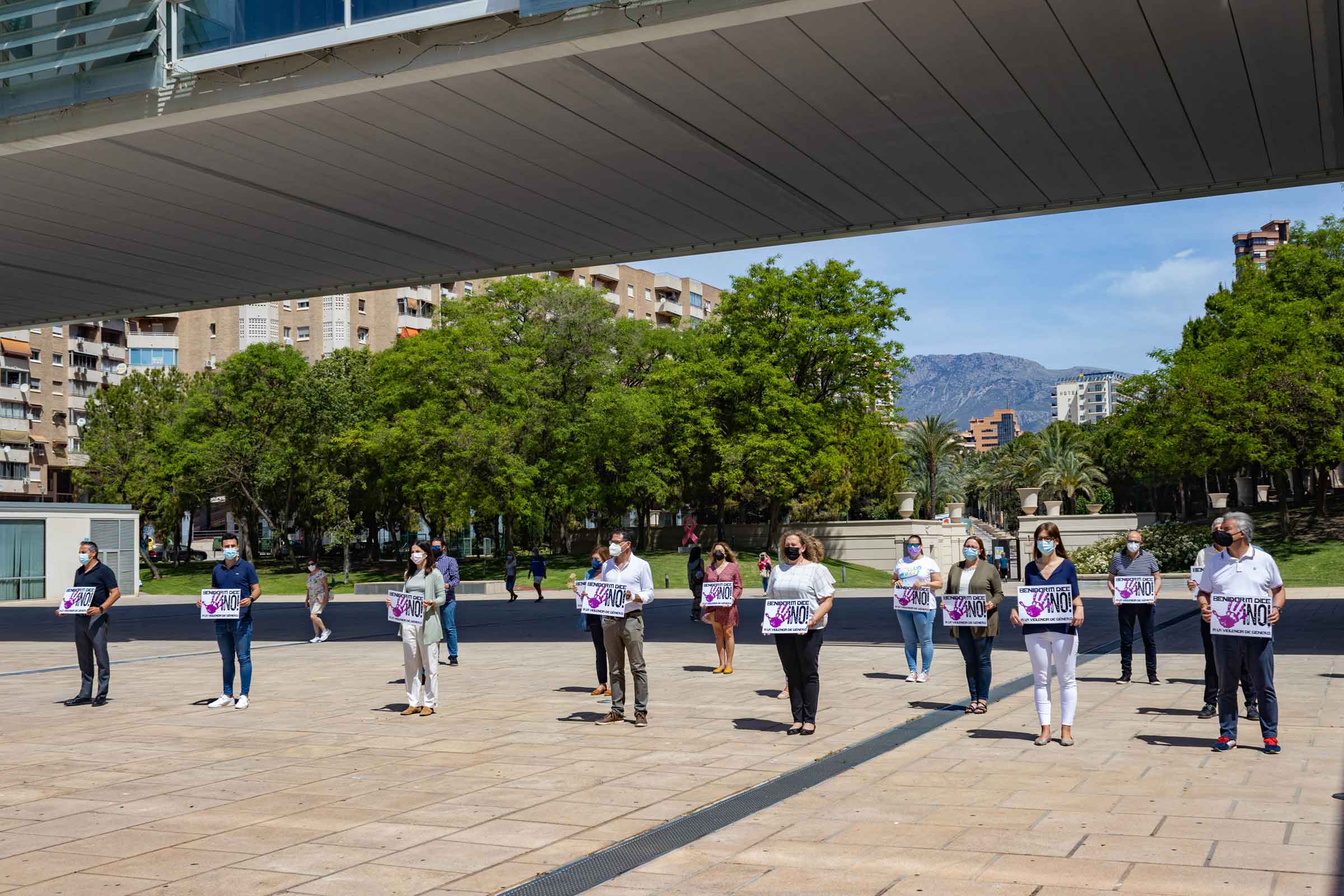 El Ayuntamiento de Benidorm ha vuelto a mostrar su más firme rechazo a la violencia machista con un minuto de silencio este mediodía en la plaza de Sus Majestades los Reyes de España, ante la puerta principal del edificio consistorial.