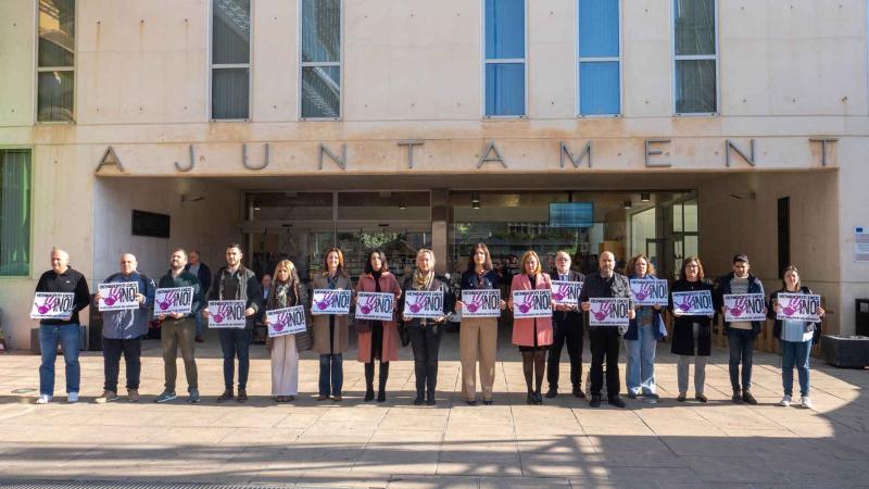 La concentración silenciosa ha tenido lugar en la puerta del Ayuntamiento y ha estado encabezada por la edil de Igualdad, Ángela Zaragozí, y otros miembros de la corporación municipal, que han expresado así su rechazo unánime a este asesinato machista.