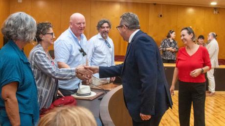La ciudad de Benidorm está siendo estos días escenario de la celebración de una cumbre de destinos europeos líderes en sostenibilidad que a lo largo de tres jornadas van a conocer en profundidad el denominado modelo Benidorm y las acciones desempeñadas en el municipio para transformar el turismo urbano a través de la sostenibilidad, la innovación, la digitalización, la accesibilidad y la gobernanza inclusiva. El alcalde Toni Pérez ha recibido hoy a esta delegación europea en el Salón de Plenos del Ayuntamiento, donde les ha dado la bienvenida y les ha trasladado su deseo de que estos días sirvan para compartir experiencias y conocimiento.
