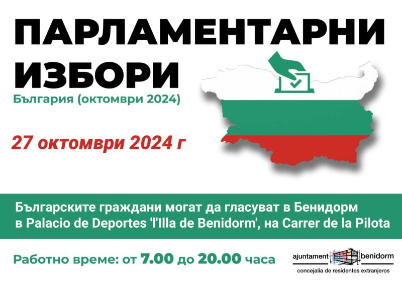Benidorm será nuevamente este domingo, 27 de octubre, sede de votación para las elecciones a la Asamblea Nacional de Bulgaria, según ha informado hoy el edil de Residentes Extranjeros, Jaime Jesús Pérez. Como en junio pasado, el centro votación estará ubicado en las instalaciones del Palau d’Esports l’Illa, concretamente en el Carrer de Pilota, “una ubicación idónea por la disponibilidad de aparcamiento y por su proximidad al enlace con la AP-7, ya que están convocados a las urnas ciudadanos búlgaros de diversos puntos de la provincia de Alicante”. Este centro electoral estará operativo desde las 07.00 hasta las 20.00 horas.