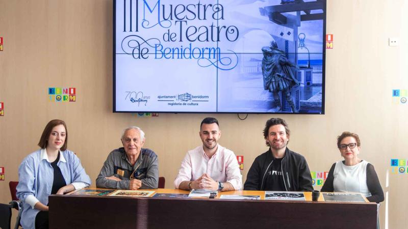 La Concejalía de Cultura del Ayuntamiento de Benidorm ha presentado este miércoles la tercera edición de la Muestra de Teatro, que se desarrollará el próximo mes de mayo en el Centro Cultural y que contará con cinco representaciones a cargo de una compañía de teatro profesional y cuatro amateurs formadas por vecinos de Benidorm y de otras localidades de la Marina Baixa. El concejal del área, Jaime Jesús Pérez, ha estado acompañado en esta presentación de esta nueva edición por representantes de estos últimos: el Taller Municipal de Teatro, Alpí Teatre, Tossal Teatre y Teatro 360, que han ofrecido algunas pinceladas de los textos que pondrán en escena y han agradecido el “impulso” municipal a este evento, que representa “una gran oportunidad” para los aficionados a las artes escénicas.