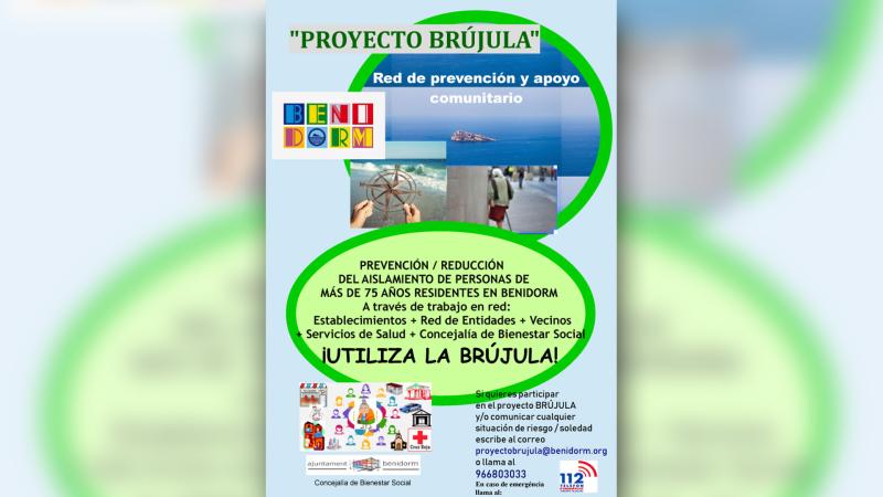 El Proyecto Brújula es una iniciativa que puso en marcha el Ayuntamiento de Benidorm en el año 2018 para detectar casos de personas mayores que viven en una soledad no deseada para evitar situaciones de aislamiento que pueden afectar gravemente a su bienestar y calidad de vida. Para que ello sea posible, el proyecto cuenta con una red de voluntarios y colaboradores, como centros de salud, farmacias, entidades bancarias, entidades como Cruz Roja o Cáritas, así como los clásicos comercios de barrio. La operativa del proyecto marca que, ante la sospecha de algún posible caso, éste debe comunicarse a la Concejalía, cuyos técnicos se desplazan al domicilio de la persona para realizar la valoración y trasladarle los posibles servicios que hay a su alcance.