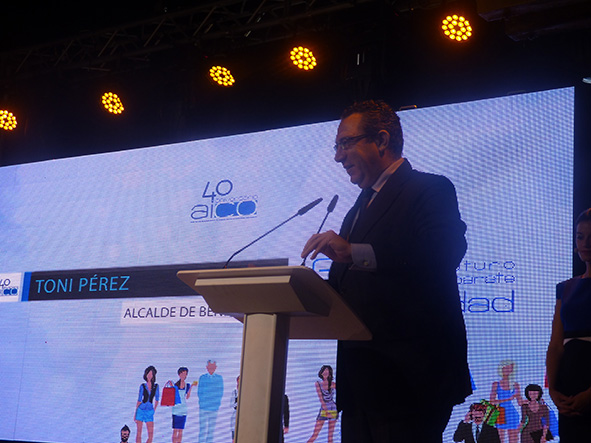 la empresa Blau Comunicación y Aurrerá Experience Catering reunió a cerca de 400 personas, entre los asistentes expresidentes de AICO como Luis Amor, Jaime Ollé, Eliseo Yus y miembros de sus juntas directivas, y en la parte institucional, una representación importante de las administraciones locales, provinciales, autonómicas y nacionales como el Alcalde de Benidorm Antonio Pérez y la Concejal de Comercio Ana Pellicer, el Director General de Comerç i Consum Natxo Costa, el Senador Agustín Almodóvar, el Director Territorial de Presidencia de Alicante Esteban Vallejo, el Diputado Provincial Jaime Lloret, el Secretario General de FACPYME Francisco Rovira Just y el Director Territorial del Banco Sabadell Carlos Vílchez entre otros.