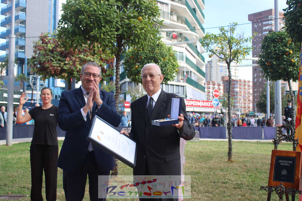 En el 47 aniversario de la Constitución Española, Benidorm ha reconocido hoy el papel clave que el exalcalde Rafael Ferrer Meliá desempeñó durante la ‘crisis del agua’ que puso en jaque a la ciudad y su industria turística a finales de los años 70. En un acto celebrado en la Plaza de la Hispanidad, Rafael Ferrer Meliá ha recibido la Medalla Corporativa de Benidorm de manos del alcalde, Toni Pérez, y en presencia de familiares, amigos y una amplia representación de la Corporación municipal y de la sociedad civil benidormense.